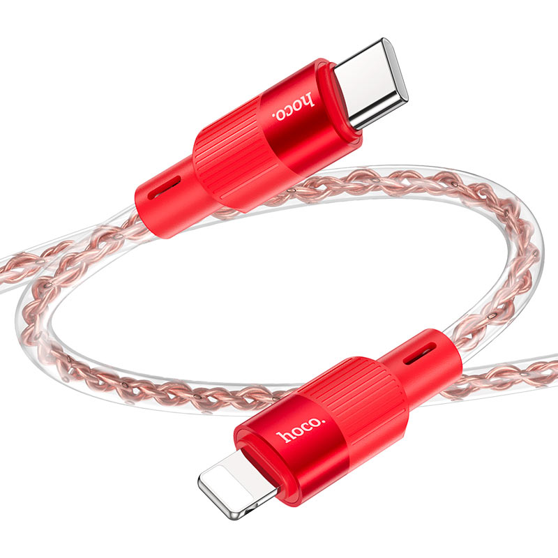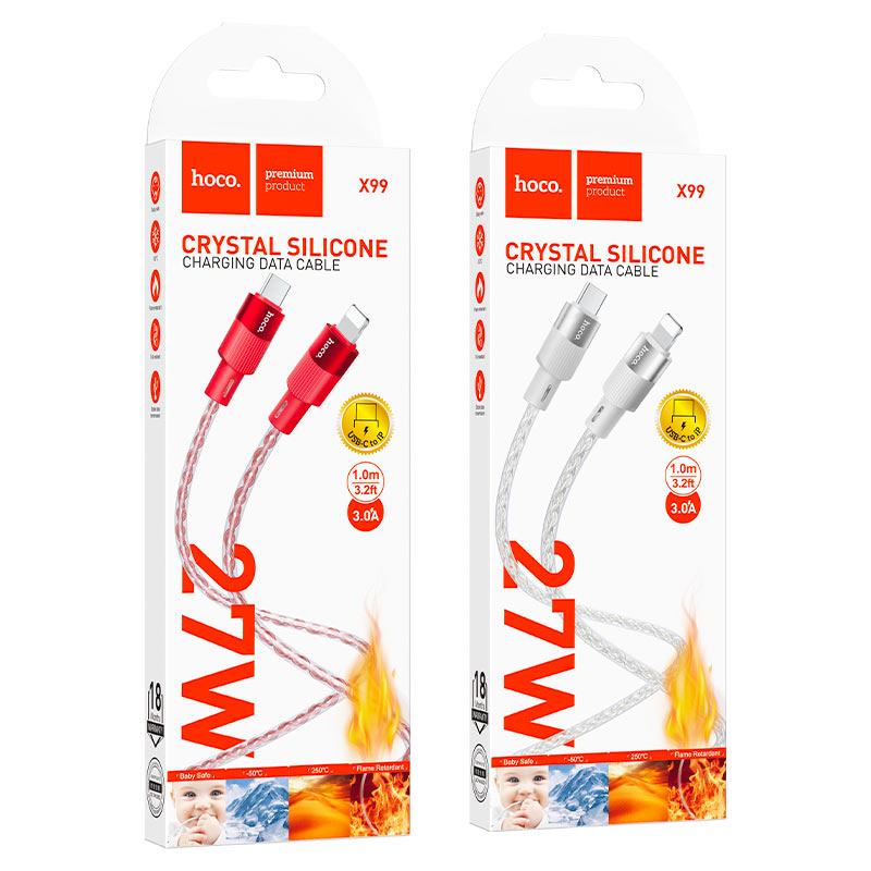 X99 Crystal junction, Type-C to Lightning charging data cable, supports PD 27W fast charge, transparent silicone sheath, length – 1m
