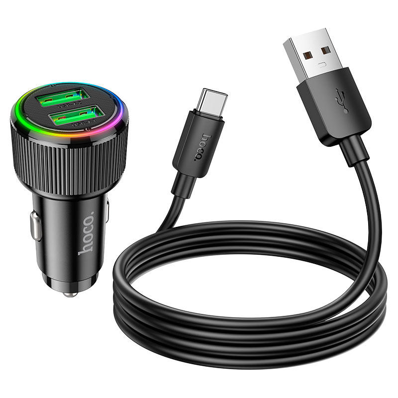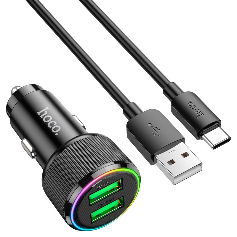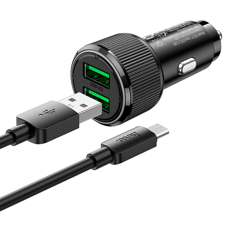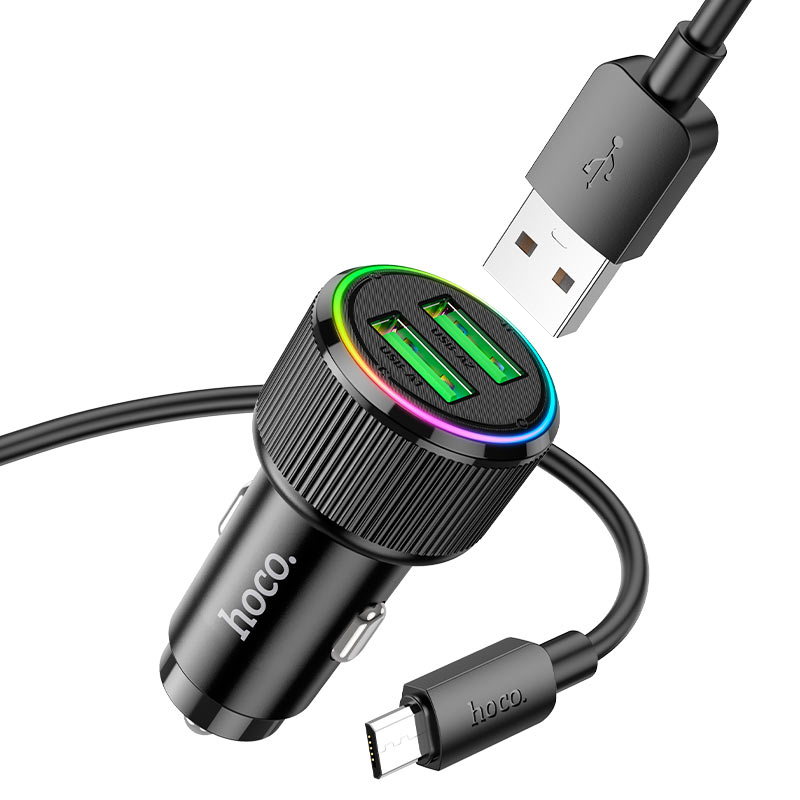 NZ14 Guerrero, car charger with dual USB-A 18W output, support fast charging protocols, sets with 1m cable USB-A to Micro-USB or USB-A to Type-C